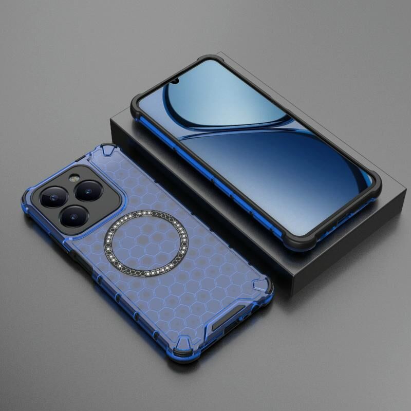 Για Realme Narzo N63 Global Honeycomb μαγνητικό δαχτυλίδι Shockproof τηλέφωνο υπόθεση (μπλε)