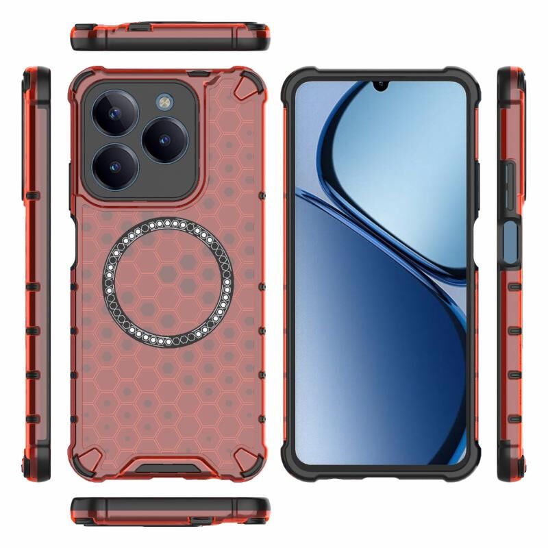 Για Realme Narzo N63 Global Honeycomb μαγνητικό δαχτυλίδι Shockproof τηλέφωνο υπόθεση (κόκκινο)