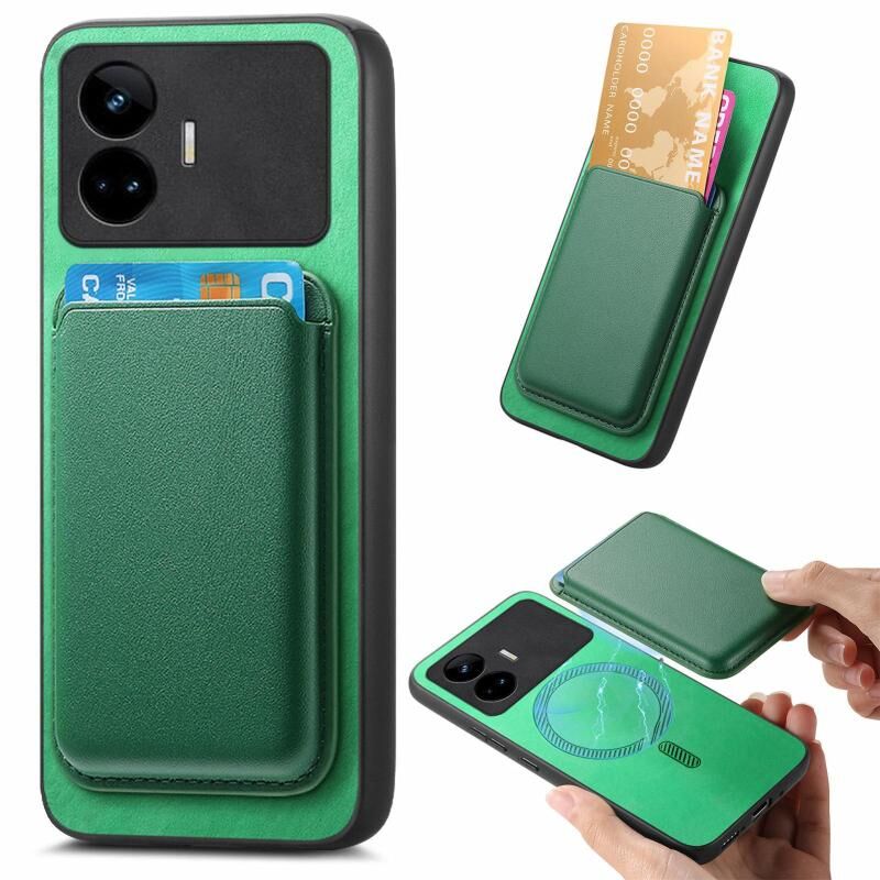 For Realme Neo 5 SE 5G Retro Magsafe Card Bag PU Back Cover Phone Case(Green)