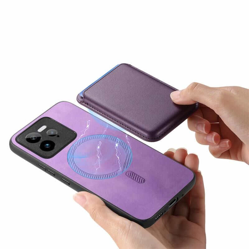 Για Realme Neo 7 Retro Magsafe Θήκη Κάρτας PU Πίσω Κάλυμμα Κινητού (Κίτρινο)