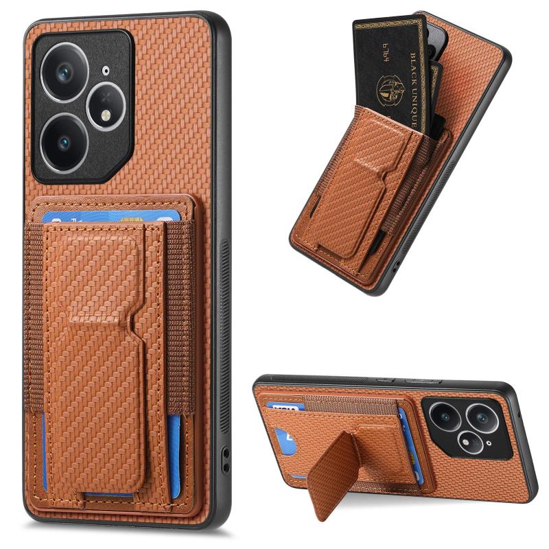 Θήκη Realme Neo7 Carbon Fiber με Στήριξη & Θήκη Κάρτας (Καφέ)
