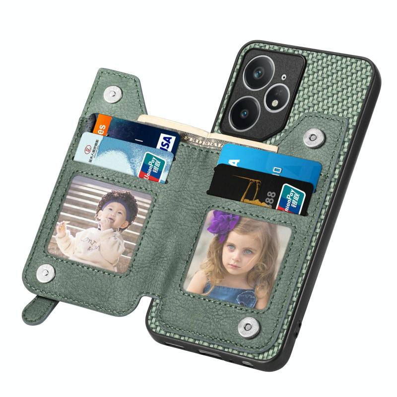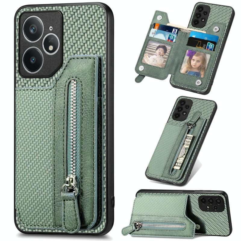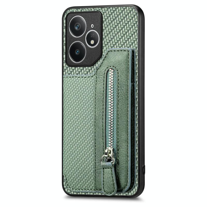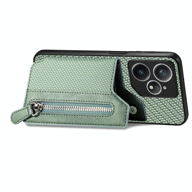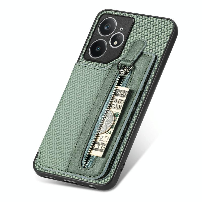 Για Realme Neo7 Θήκη Πορτοφόλι με Φερμουάρ και Ύφασμα Άνθρακα (Πράσινο)
