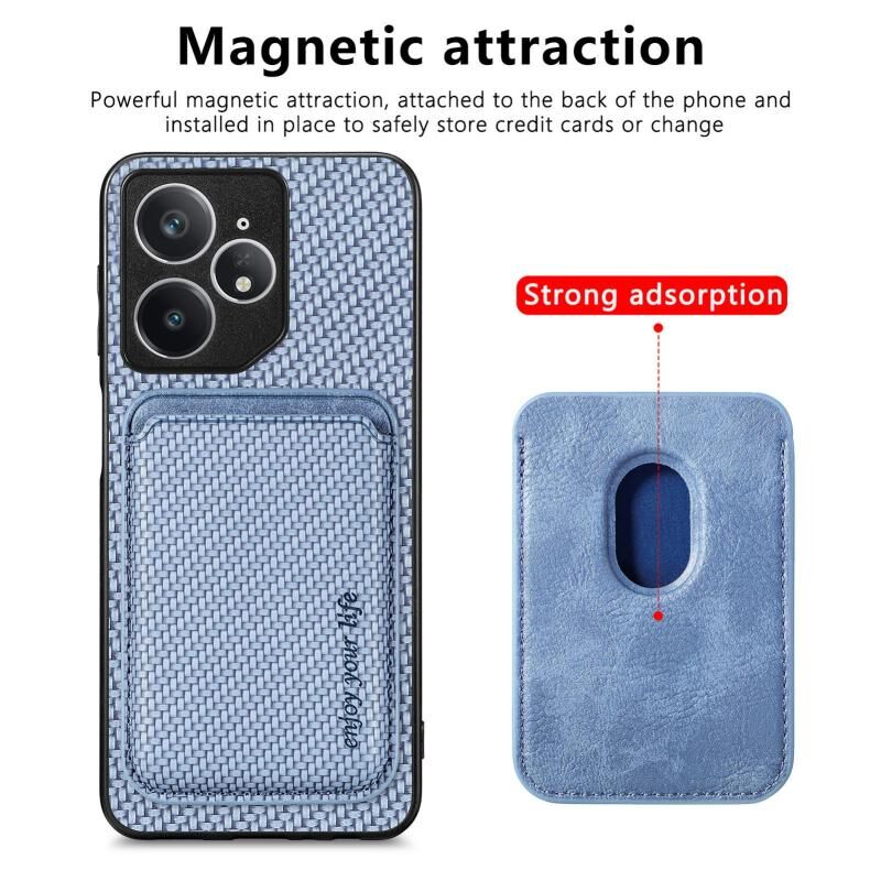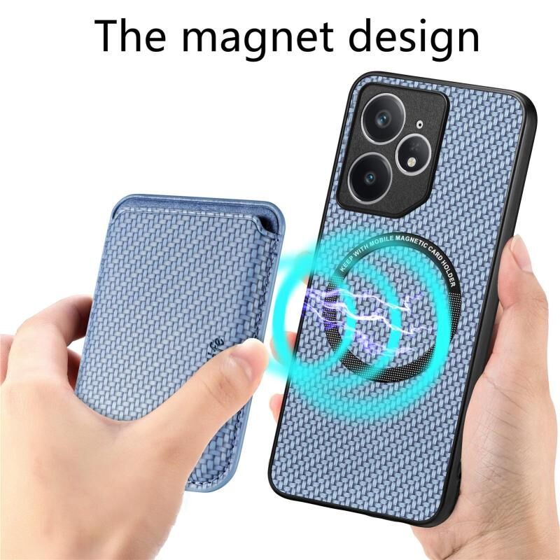 For Realme Neo7 Carbon Fiber Leather Card Magsafe Phone Case(Blue)