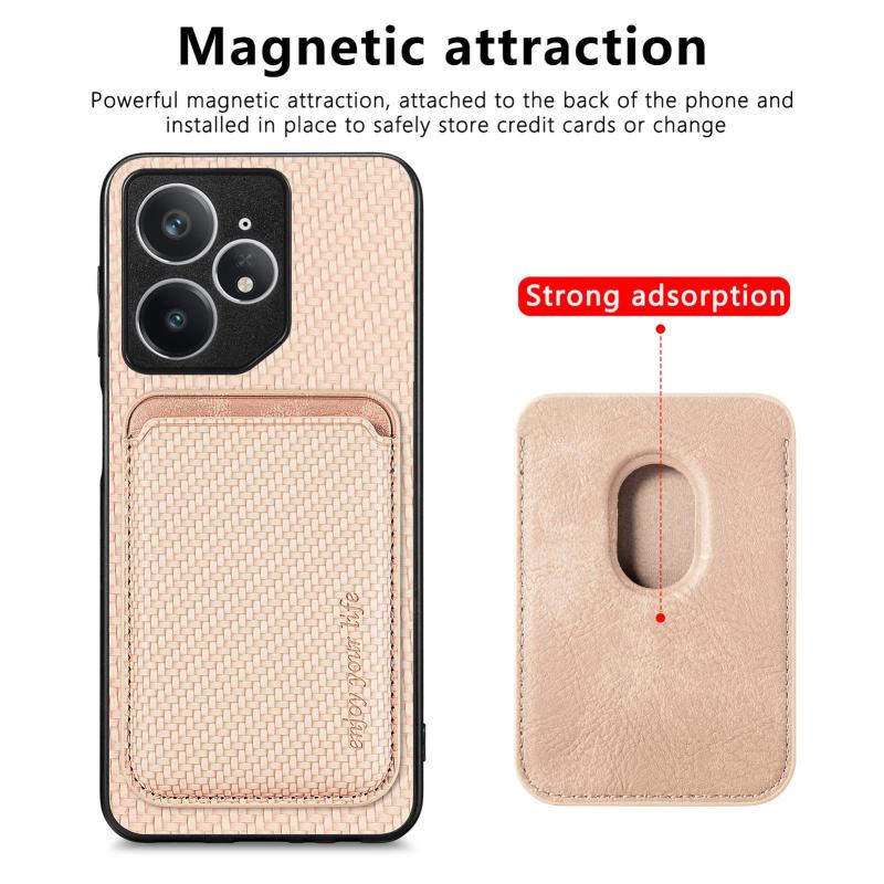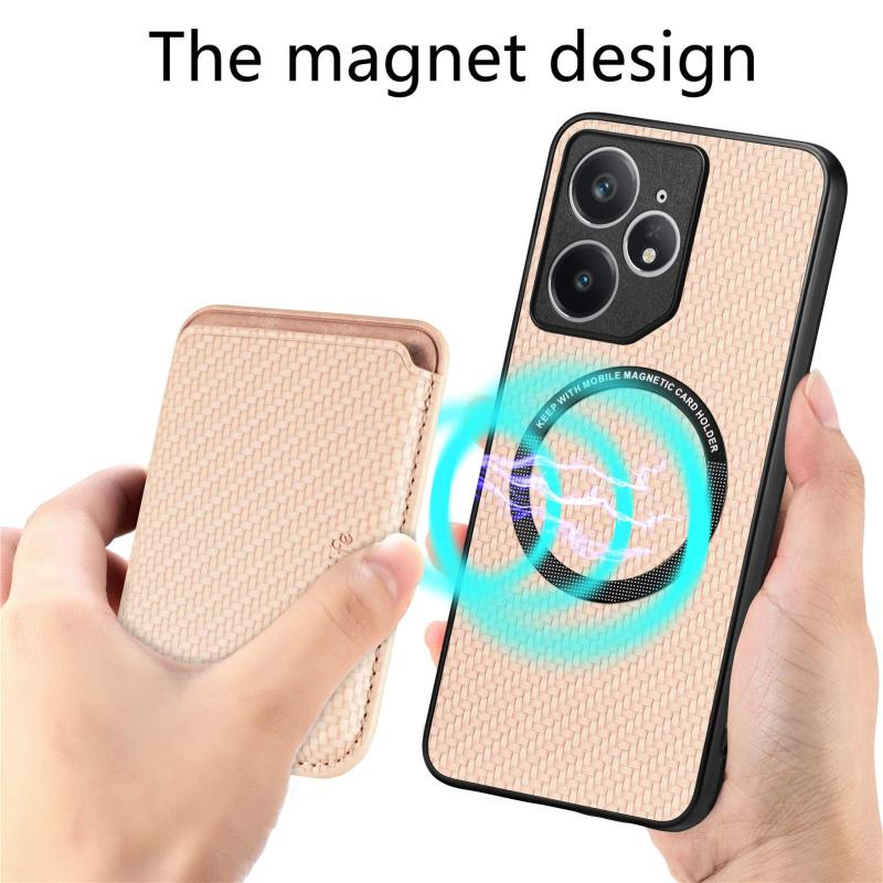 For Realme Neo7 Carbon Fiber Leather Card Magsafe Phone Case(Khaki)