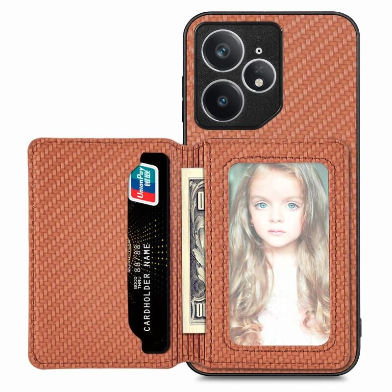 For Realme Neo7 Carbon Fiber Magnetic Card Bag Phone Case(Brown)