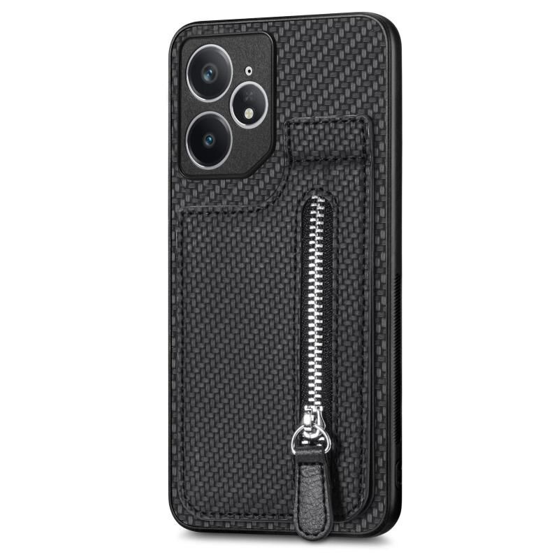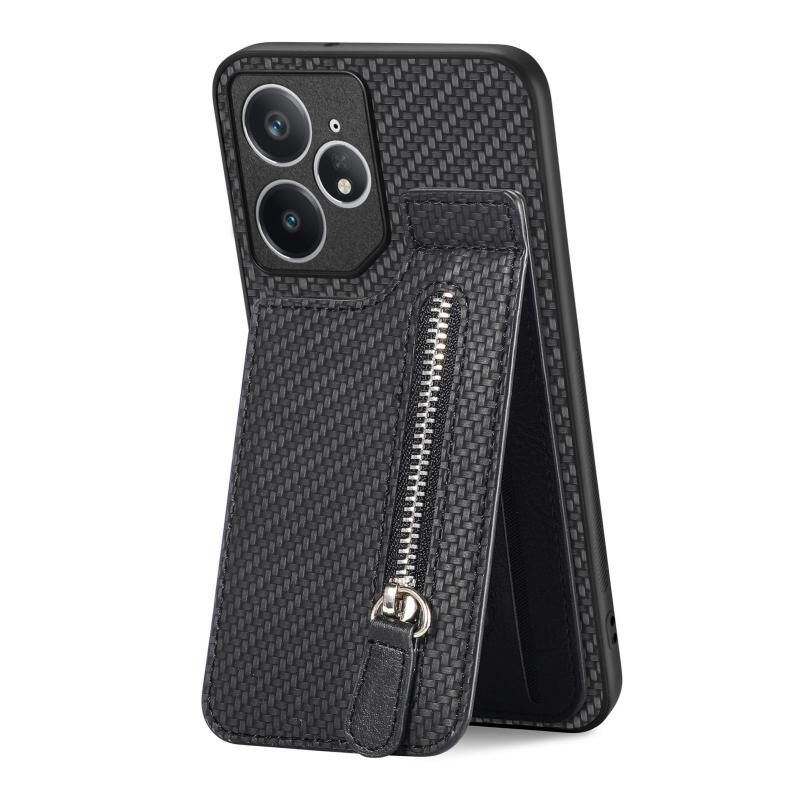 Θήκη τηλεφώνου για Realme Neo7, από ανθρακονήματα, κάθετη αναδίπλωση με φερμουάρ (Μαύρο)