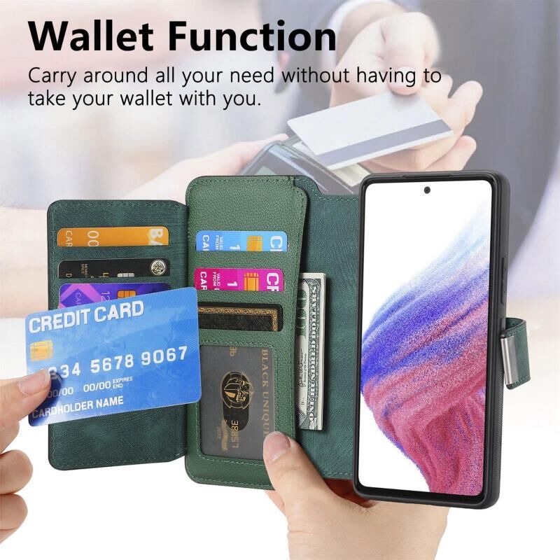 2. Zipper Wallet Function: The leather case is equipped with zipper wallet and card slots for placing cards and a small amount of cash.