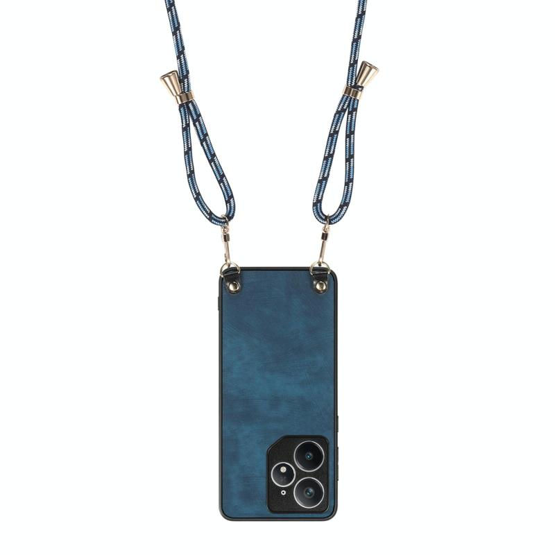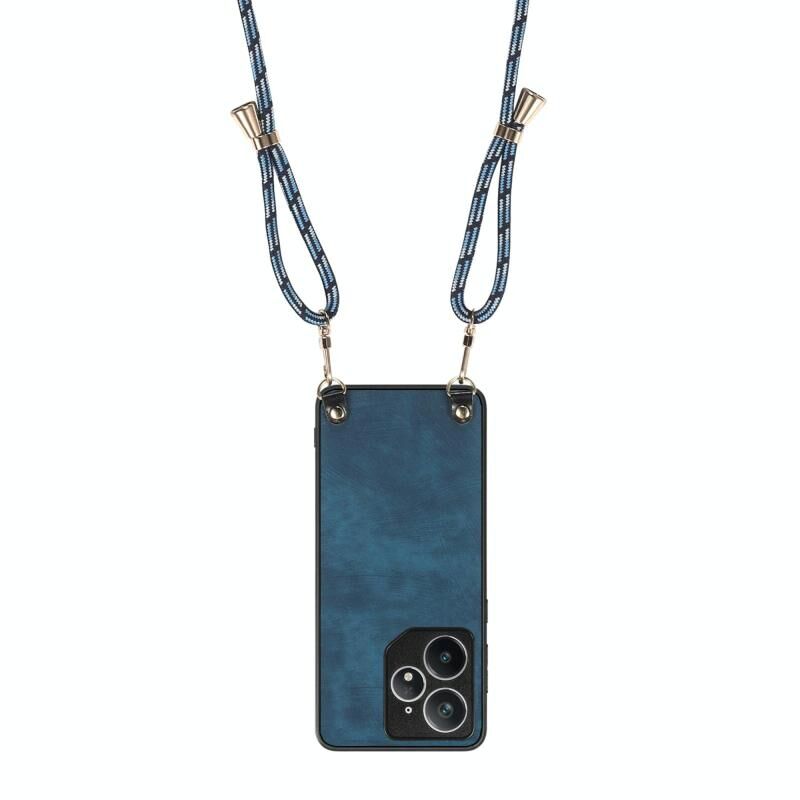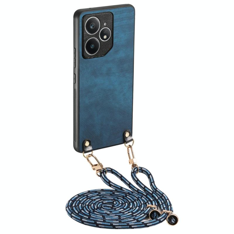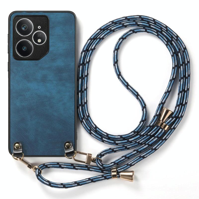 For Realme Neo7 Vintage Leather PC Back Cover Phone Case with Crossbody Strap(Blue)