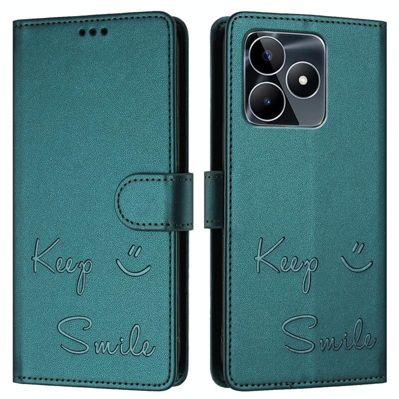 Για Realme Note 50 4G Global Smile ανάγλυφη RFID δερμάτινη θήκη τηλεφώνου (Πράσινο παγώνι)