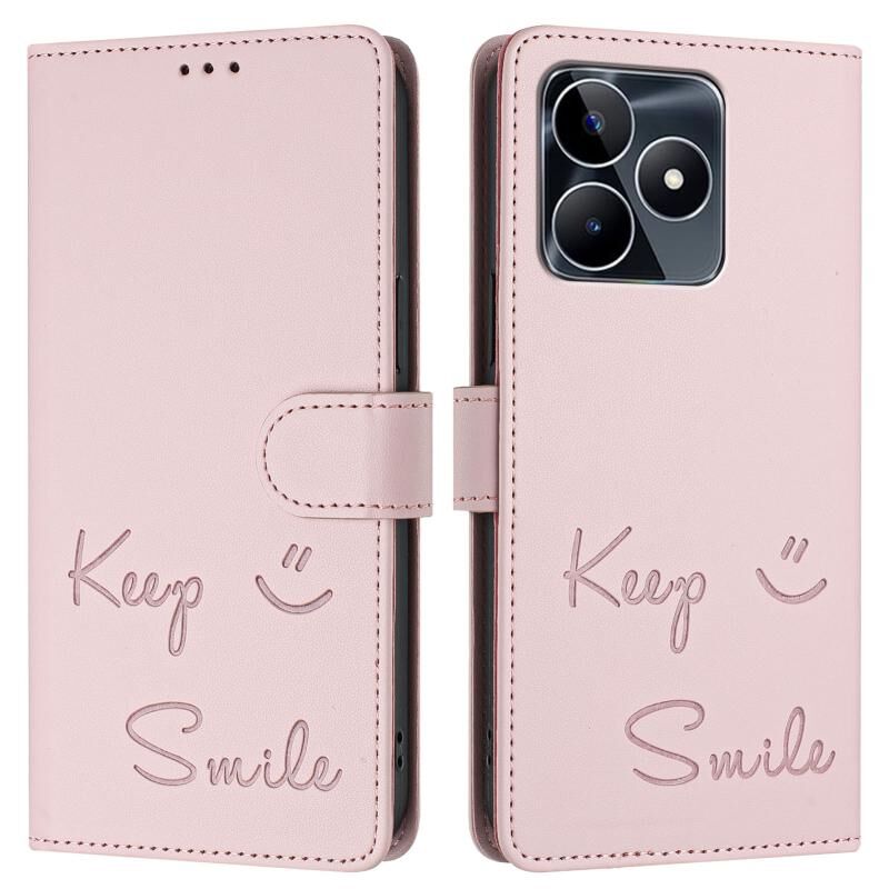 Για Realme Note 50 4G Global Smile ανάγλυφη RFID δερμάτινη θήκη τηλεφώνου (ροζ)