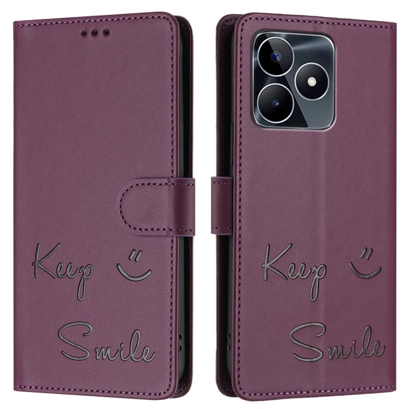 Για Realme Note 50 4G Global Smile ανάγλυφο RFID δερμάτινη θήκη τηλεφώνου (Violet)