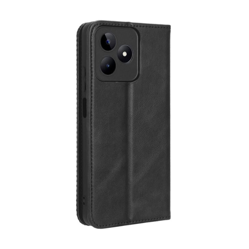 For Realme Note 50 4G Magnetic Buckle Retro Texture Leather Phone Case(Black)