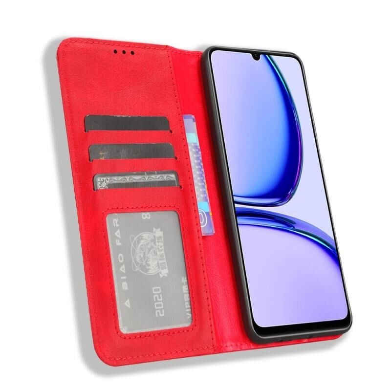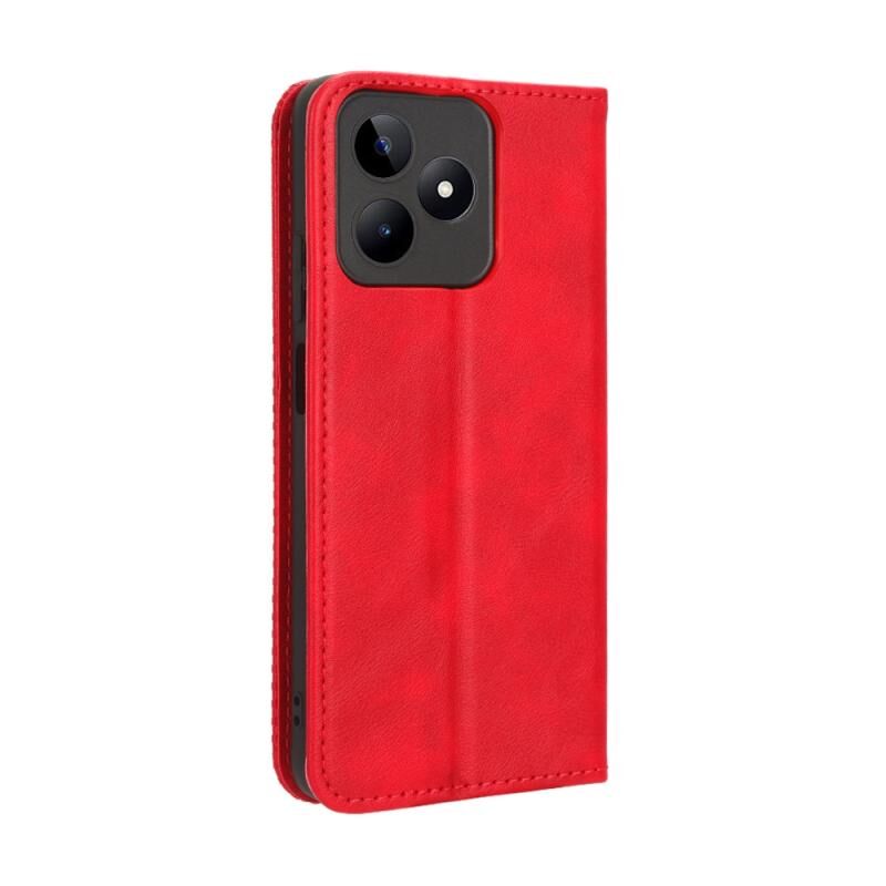 For Realme Note 50 4G Magnetic Buckle Retro Texture Leather Phone Case(Red)