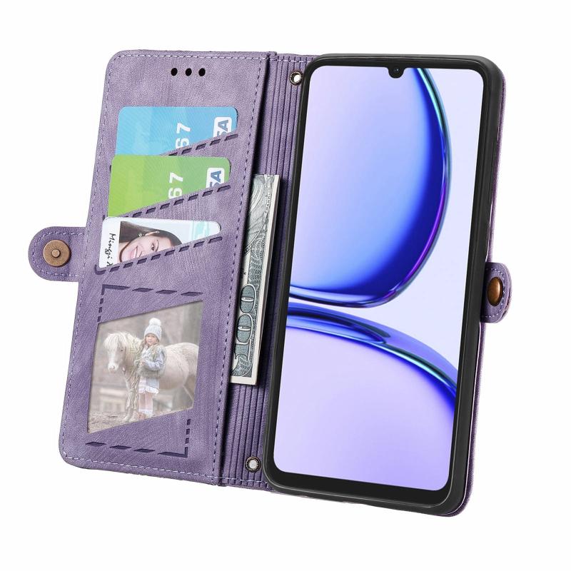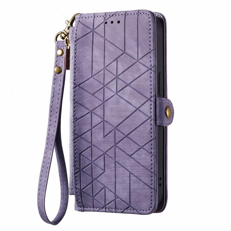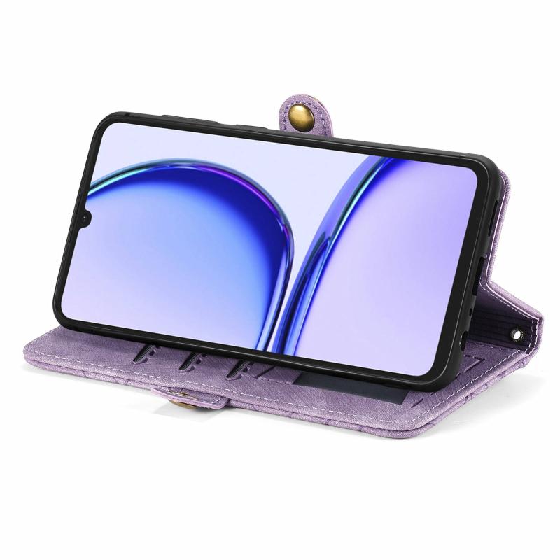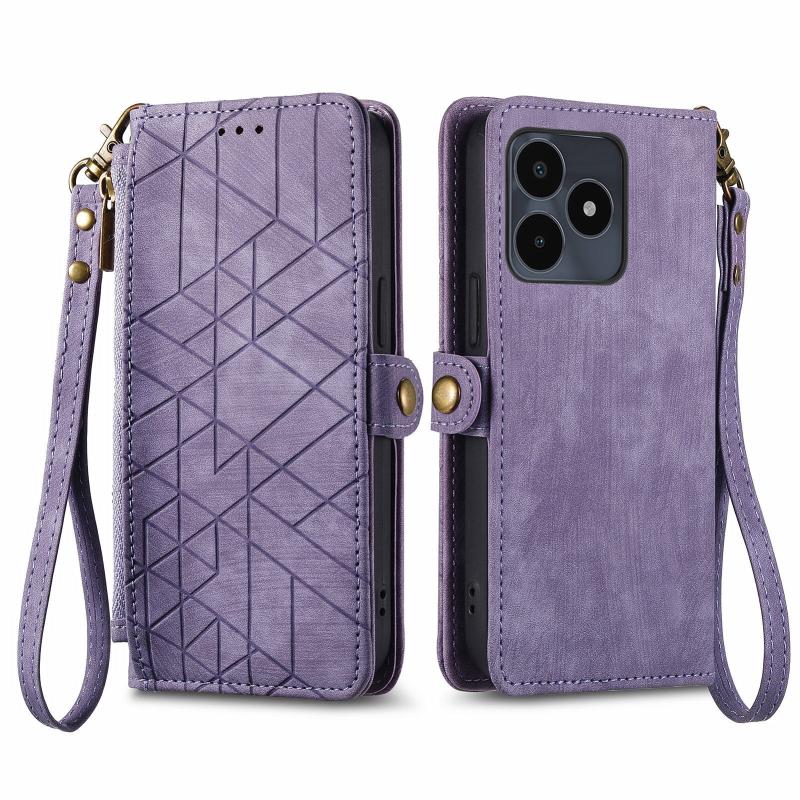 For Realme Note 50 Geometric Zipper Wallet Side Buckle Leather Phone Case(Purple)