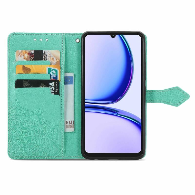 Για Realme Note 50 Mandala λουλούδι ανάγλυφο δερμάτινη θήκη τηλεφώνου (πράσινο)