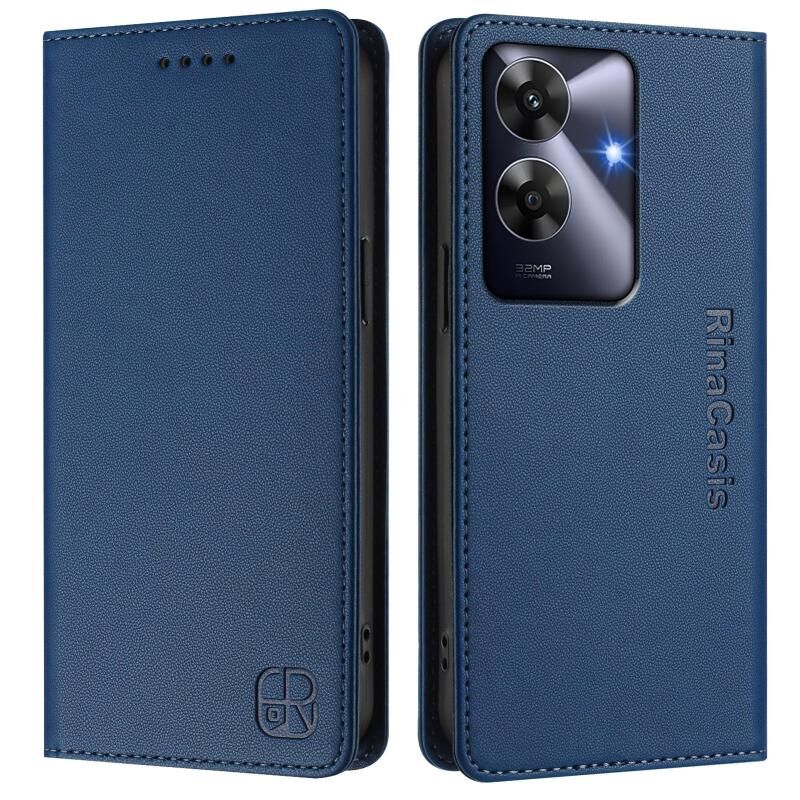 For Realme Note 60 4G / C61 4G India RC01 Dual-Folded Magnetic Suction RFID Leather Phone Case(Dark Blue)