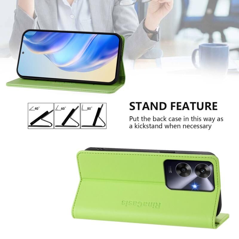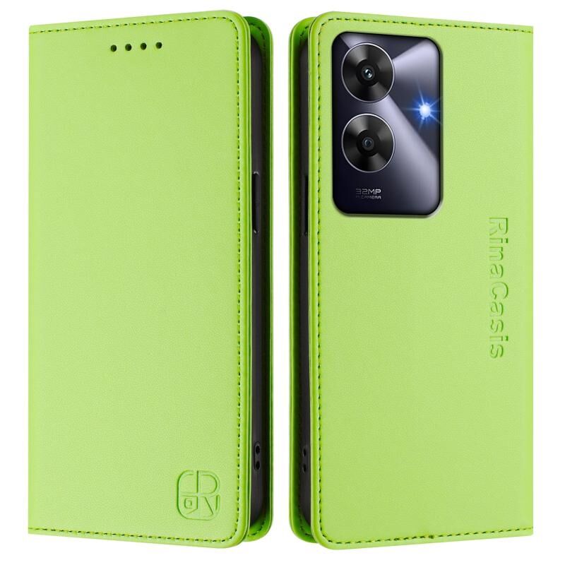 For Realme Note 60 4G / C61 4G India RC01 Dual-Folded Magnetic Suction RFID Leather Phone Case(Grass Green)