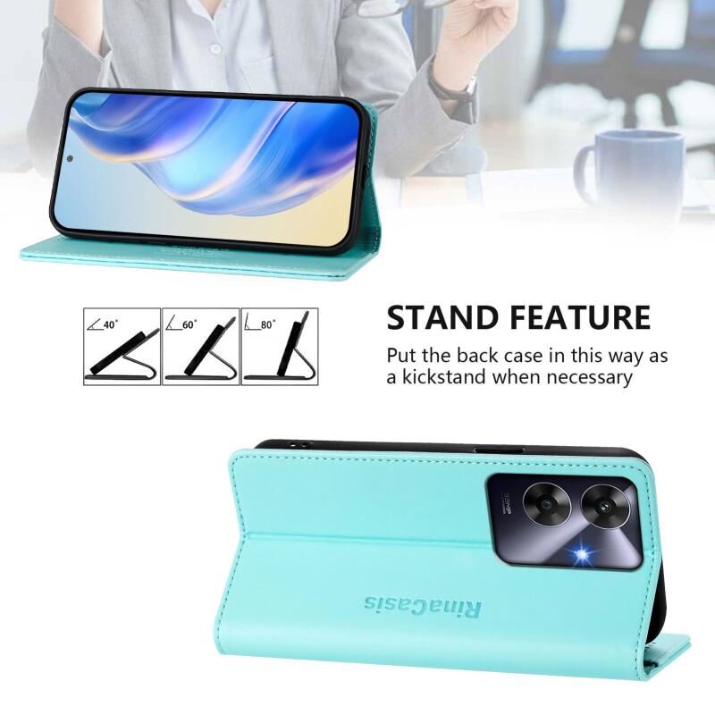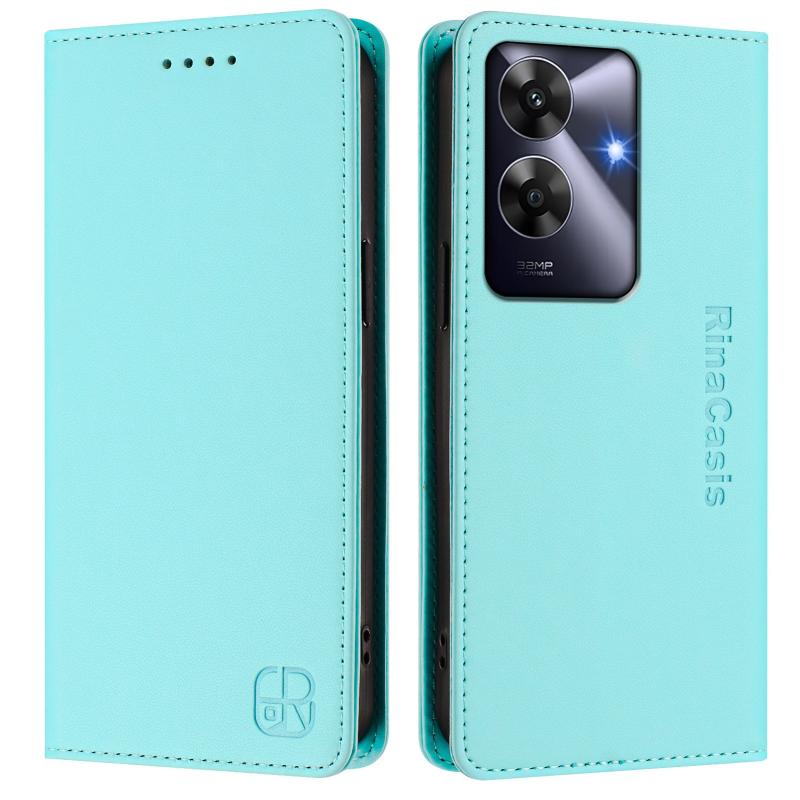 For Realme Note 60 4G / C61 4G India RC01 Dual-Folded Magnetic Suction RFID Leather Phone Case(Mint Green)