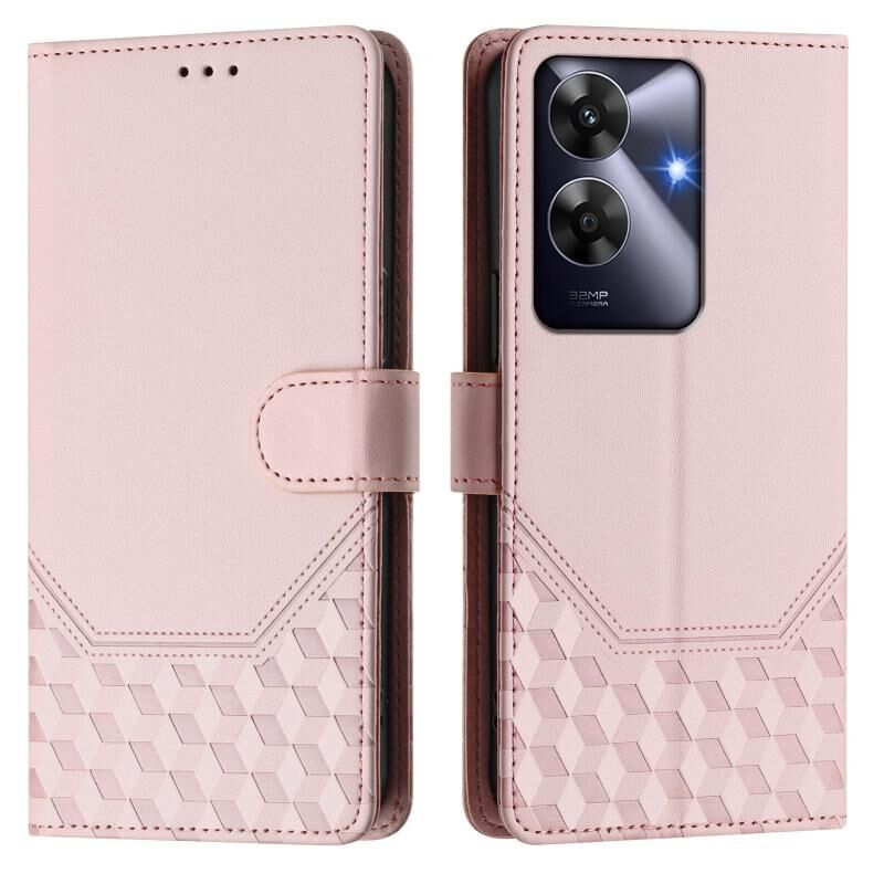 Για Realme Note 60 4G Global / C61 Ινδία Honeycomb ανάγλυφη RFID δερμάτινη θήκη τηλεφώνου (ροζ)