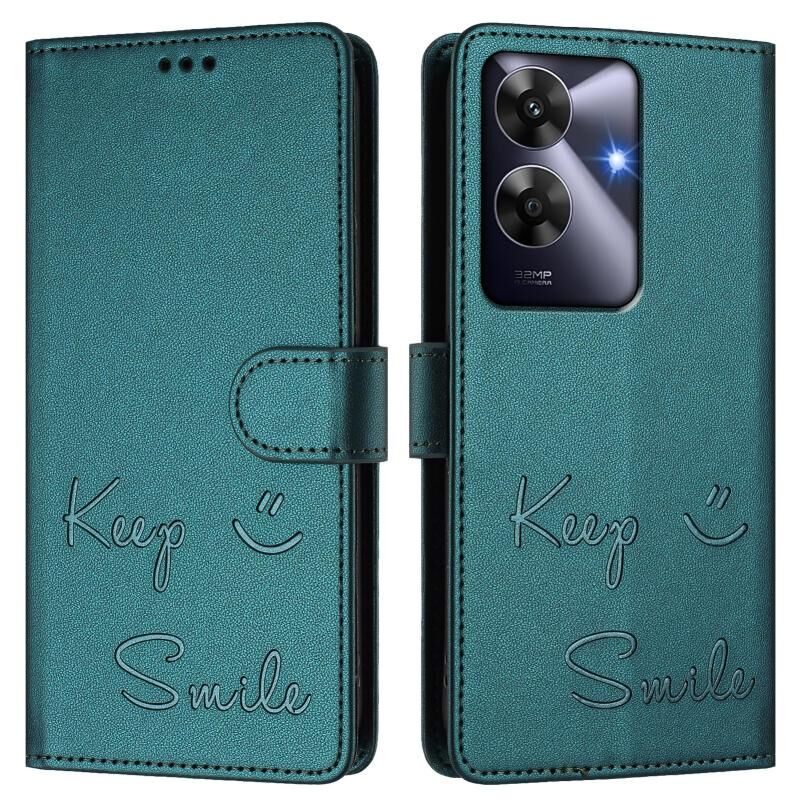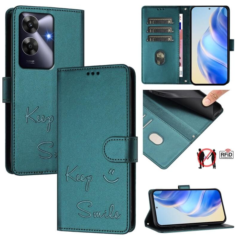 Για Realme Note 60 4G Global Smile ανάγλυφο RFID δερμάτινη θήκη τηλεφώνου (Peacock Green)