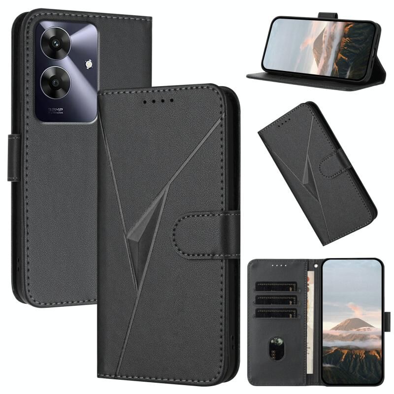 Για Realme Σημείωση 60 Τρίγωνο μοτίβο αγκράφα κούμπωμα δερμάτινη θήκη τηλεφώνου (μαύρο)