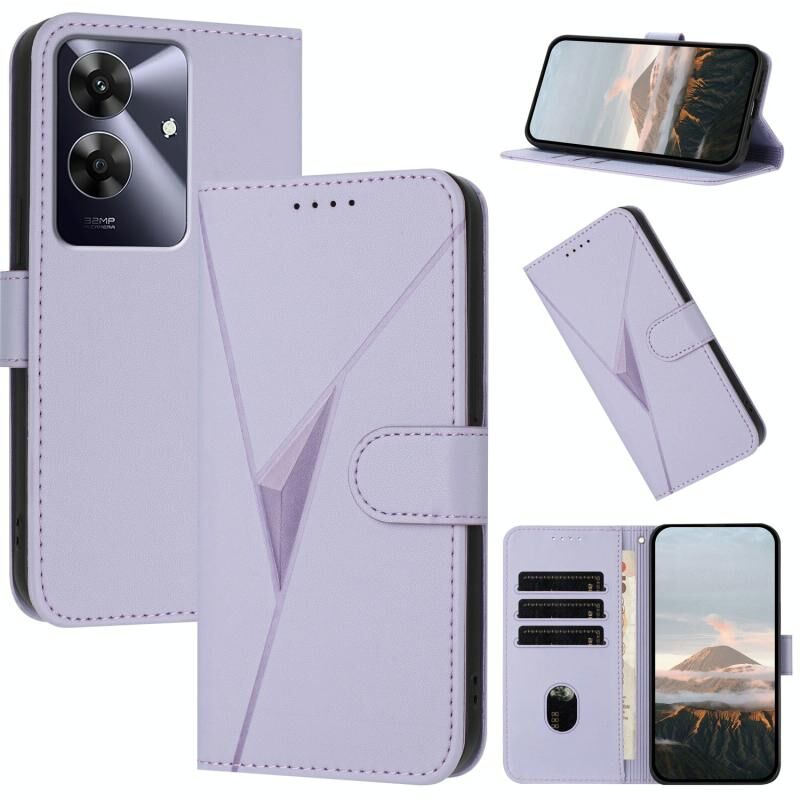 Για Realme Σημείωση 60 Τρίγωνο μοτίβο αγκράφα κούμπωμα δερμάτινη θήκη τηλεφώνου (Light Purple)