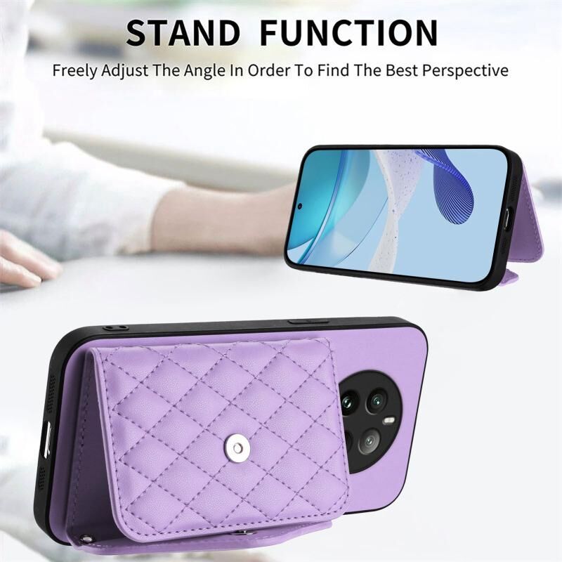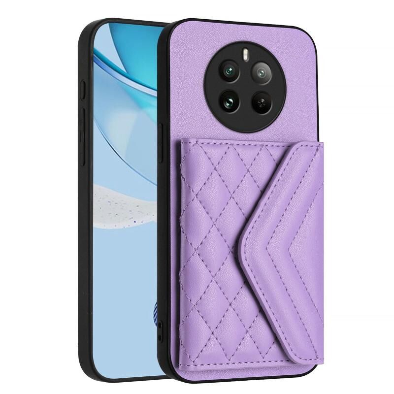 Για Realme P1 Pro 5G Ινδία Rhombic υφή κάρτα τσάντα RFID υπόθεση τηλεφώνου με μακρύ κορδόνι (Light Purple)
