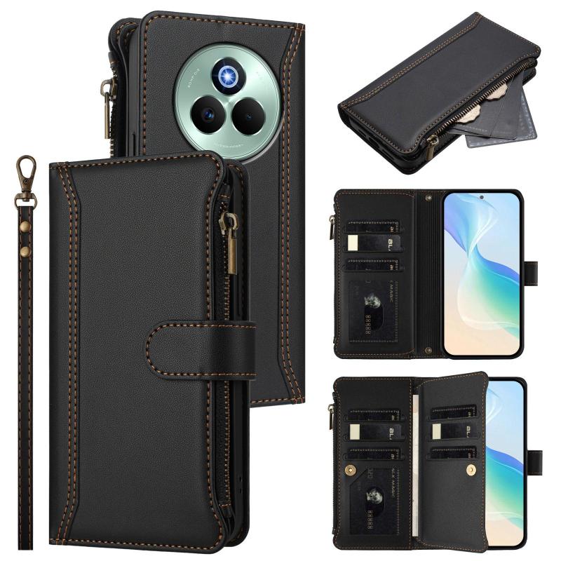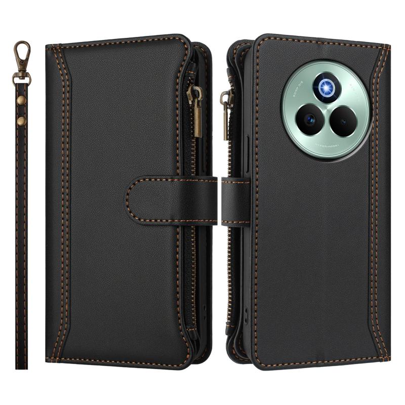 For Realme P3 Pro 5G Global Magnetic Closure 9 Card Slots Zipper Leather Case with Hand Strap(Black)