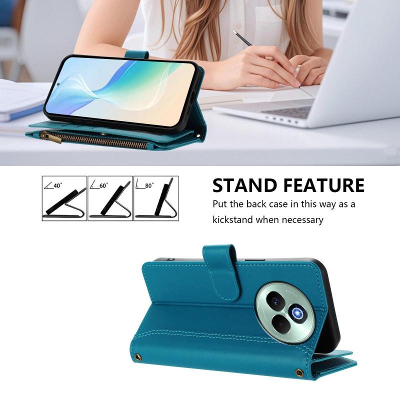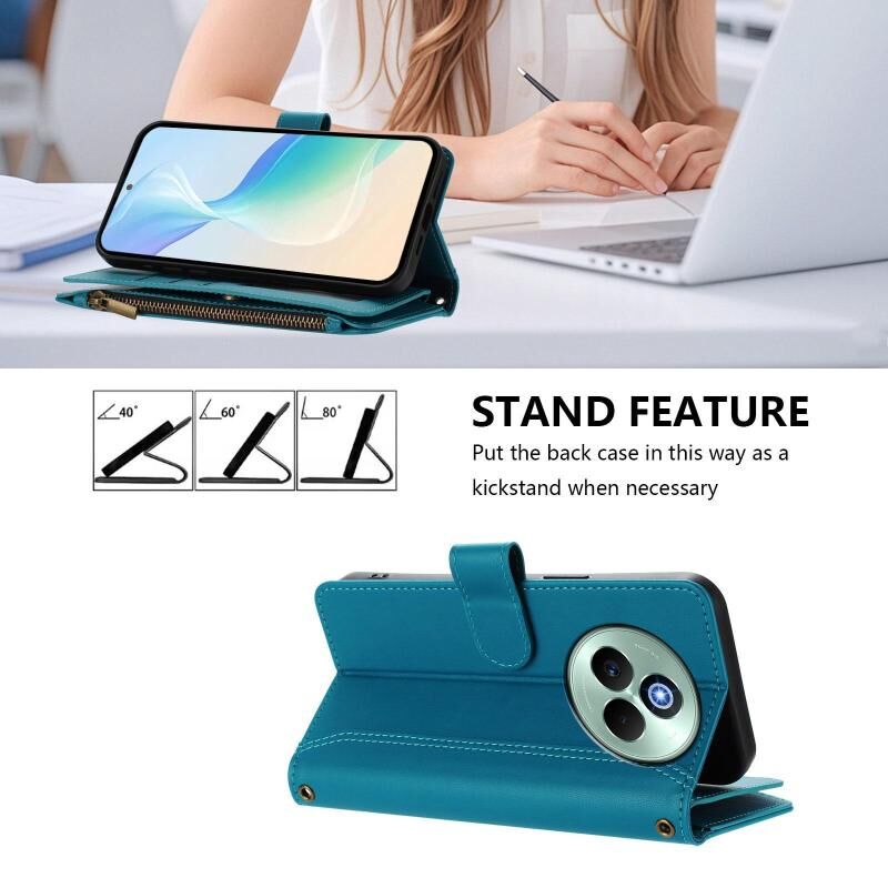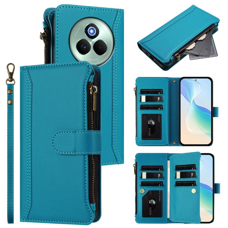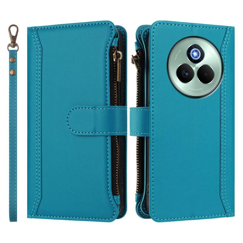 For Realme P3 Pro 5G Global Magnetic Closure 9 Card Slots Zipper Leather Case with Hand Strap(Turquoise)