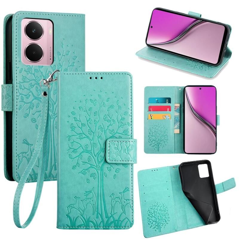 For Realme P3 Pro 5G Global Tree & Deer Embossed Leather Phone Case(Green)