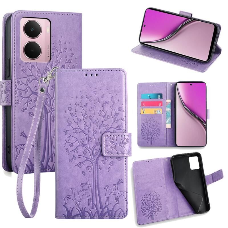 For Realme P3 Pro 5G Global Tree & Deer Embossed Leather Phone Case(Purple)