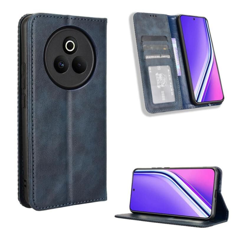 For Realme P3 Pro 5G Magnetic Buckle Retro Texture Leather Phone Case(Blue)