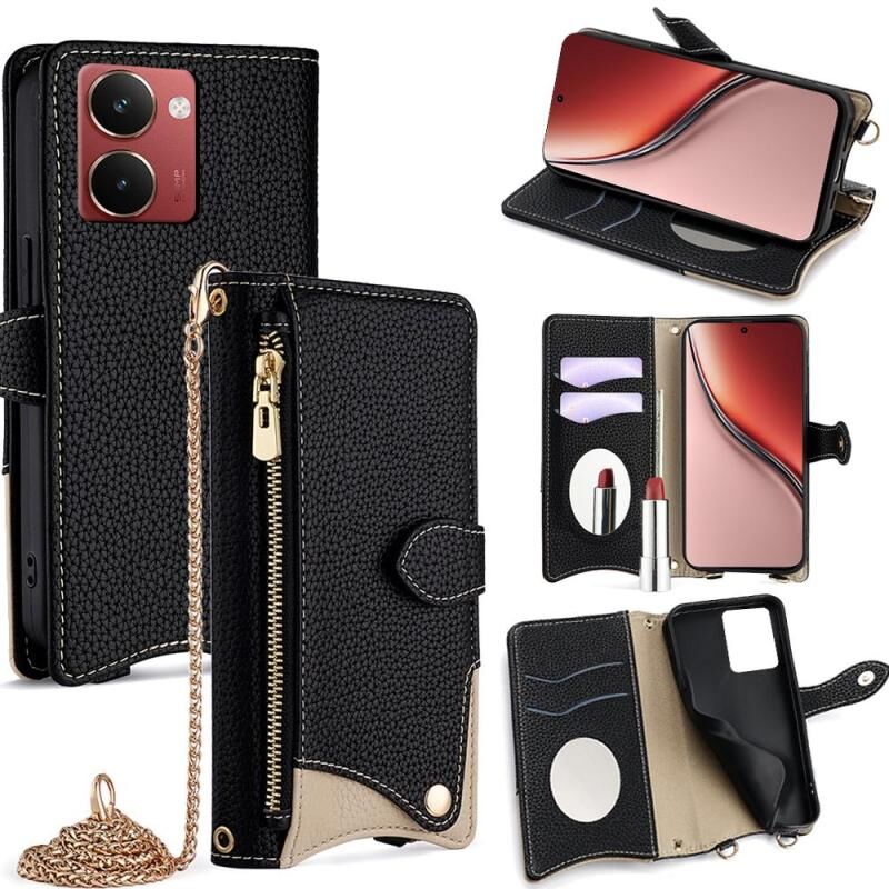 7. Built-in Oval Stainless Steel Makeup Mirror: A durable, scratch-resistant oval mirror inside the phone case for easy makeup touch-ups on the go.