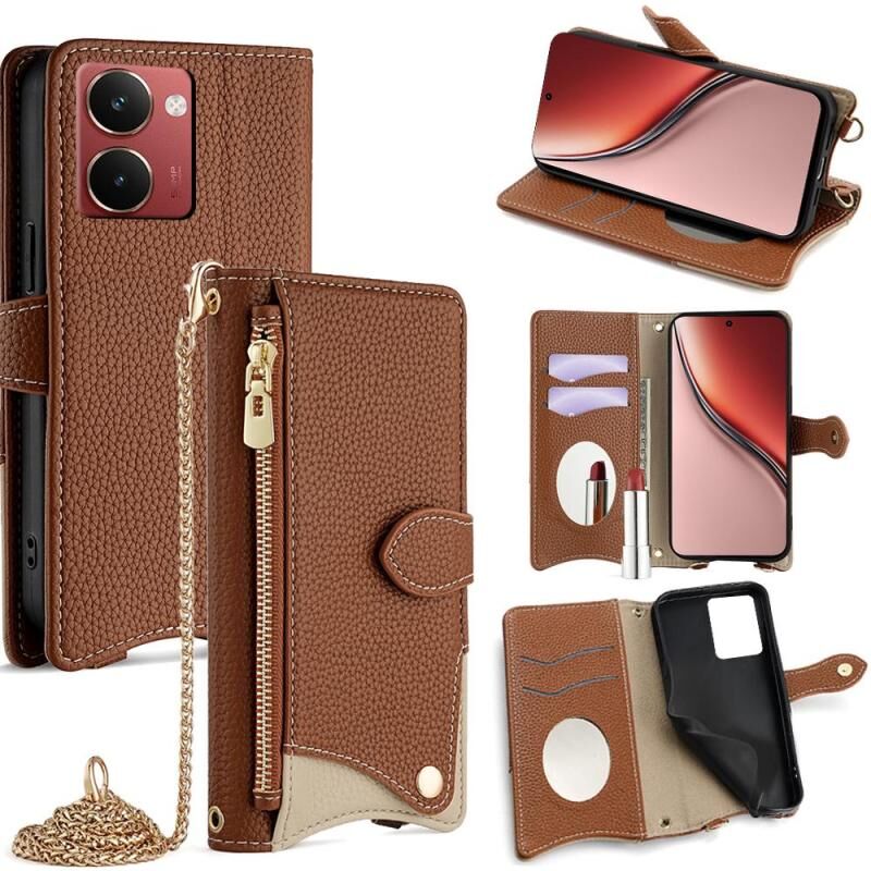 For Realme P3 Ultra 5G Crossbody Chain Fishtail Litchi Leather Phone Case(Brown)