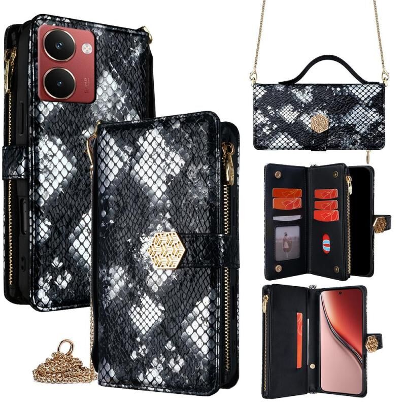 For Realme P3 Ultra 5G Crossbody Handle Snake Texture Leather Phone Case(Black)
