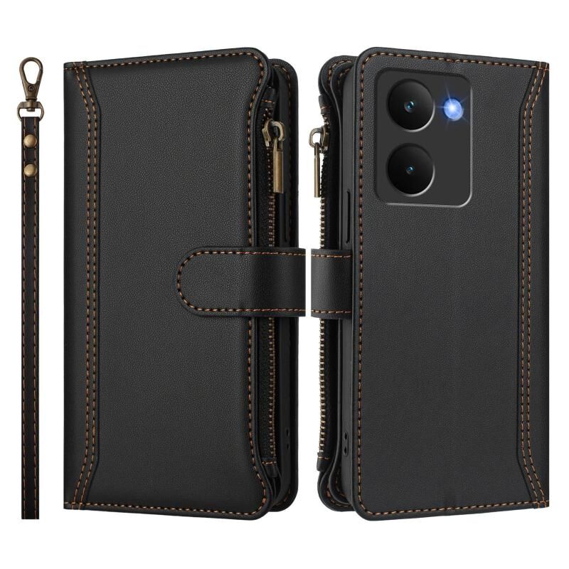 For Realme P3 Ultra 5G Global Magnetic Closure 9 Card Slots Zipper Leather Case with Hand Strap(Black)