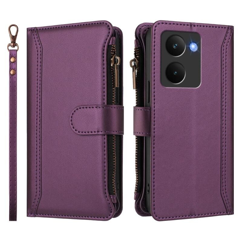 For Realme P3 Ultra 5G Global Magnetic Closure 9 Card Slots Zipper Leather Case with Hand Strap(Purple)