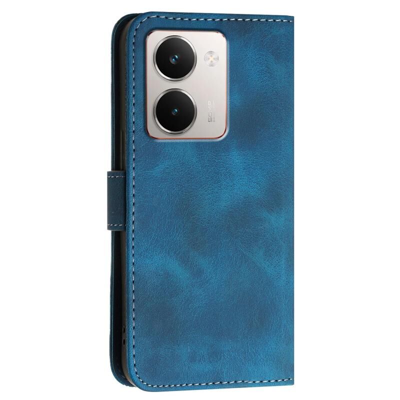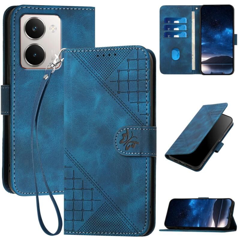 For Realme P3 Ultra 5G Grid Butterfly Embossed Pattern Leather Phone Case with Lanyard(Dark Blue)