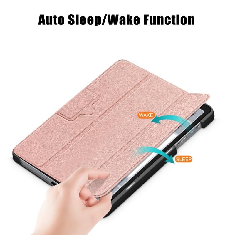 For Realme Pad Mini 8.7 3-folding Magnetic Buckle Custer Texture Leather Tablet Case(Rose Gold)
