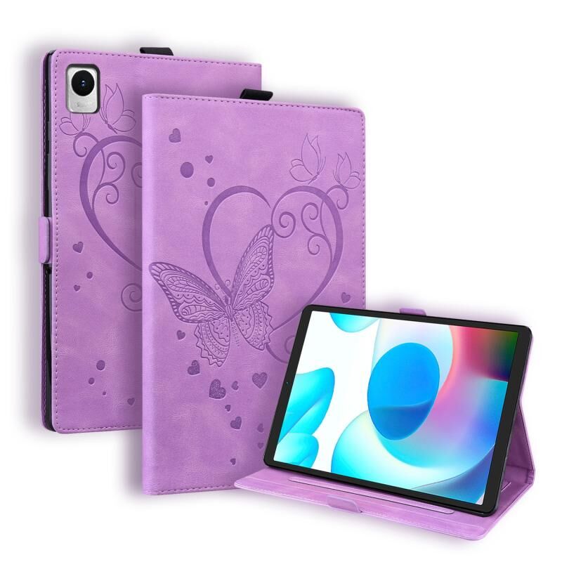 Για το Realme Pad Mini 8.7 ιντσών Love Butterfly Pattern Leather Tablet Case με θήκη & Sleep (μωβ)