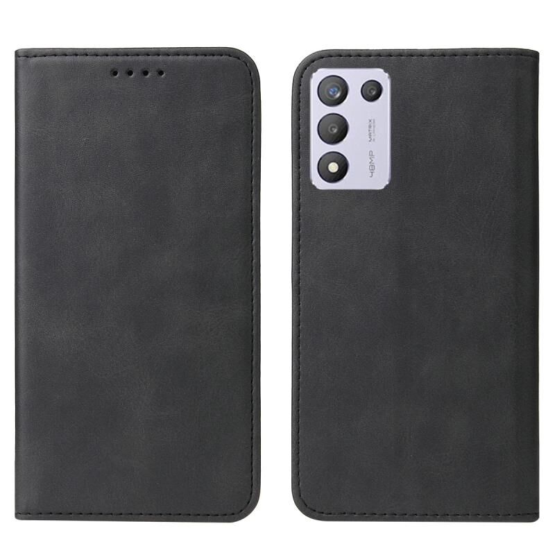 Για Realme Q3t Μαγνητικό κλείσιμο δερμάτινη θήκη τηλεφώνου (Μαύρο)