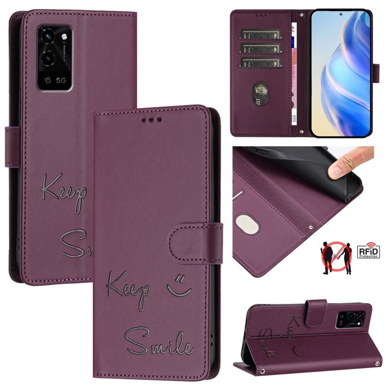 Για Realme V11 5G Χαμόγελο ανάγλυφο RFID δερμάτινη θήκη τηλεφώνου (Violet)