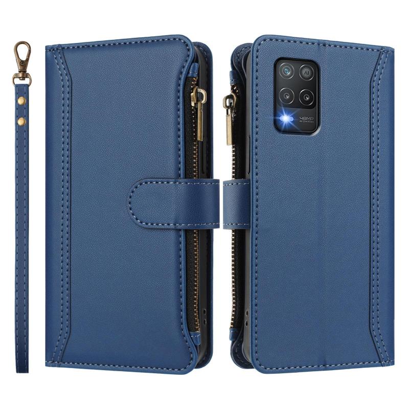 For Realme V13 5G / Q3 5G / Q3i 5G Magnetic Closure 9 Card Slots Zipper Leather Case with Hand Strap(Dark Blue)
