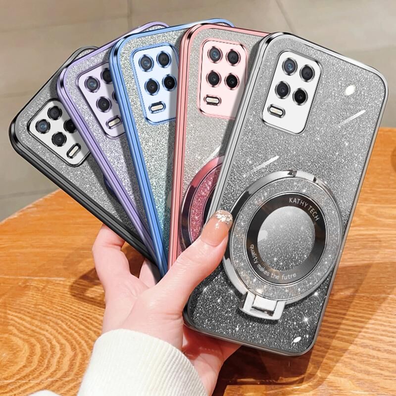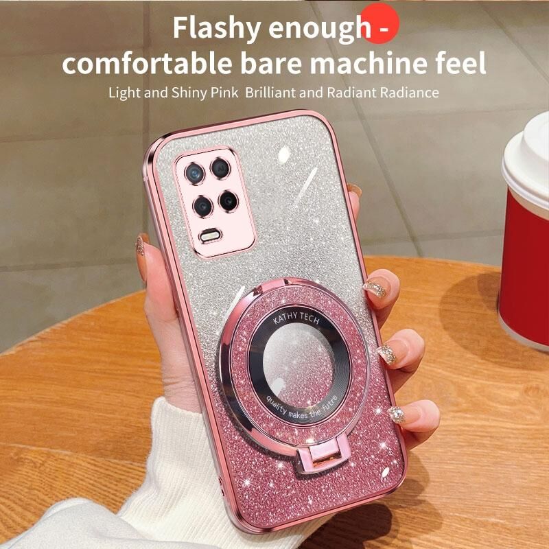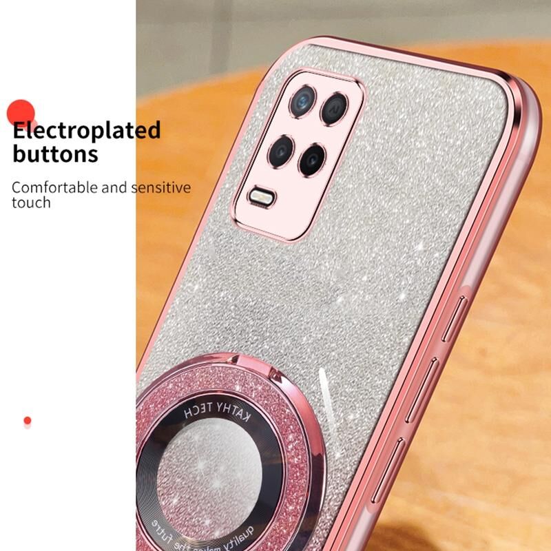 For Realme V13 / 8 5G / Q3i / K9X Plated Gradient Glitter Round Holder TPU Phone Case(Pink)
