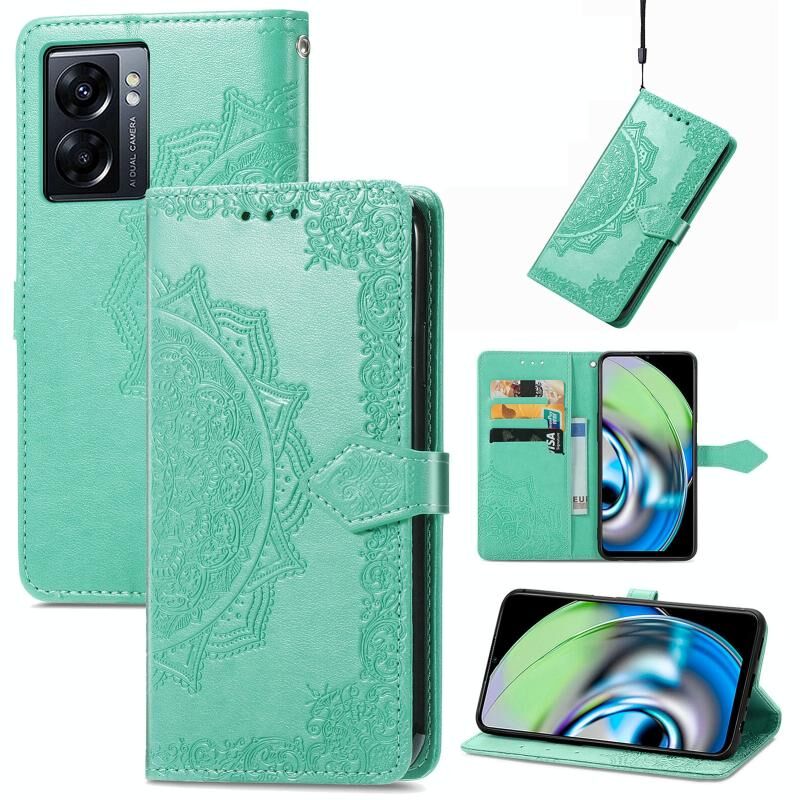 Για Realme V23 Mandala λουλούδι ανάγλυφο δερμάτινη θήκη τηλεφώνου (πράσινο)