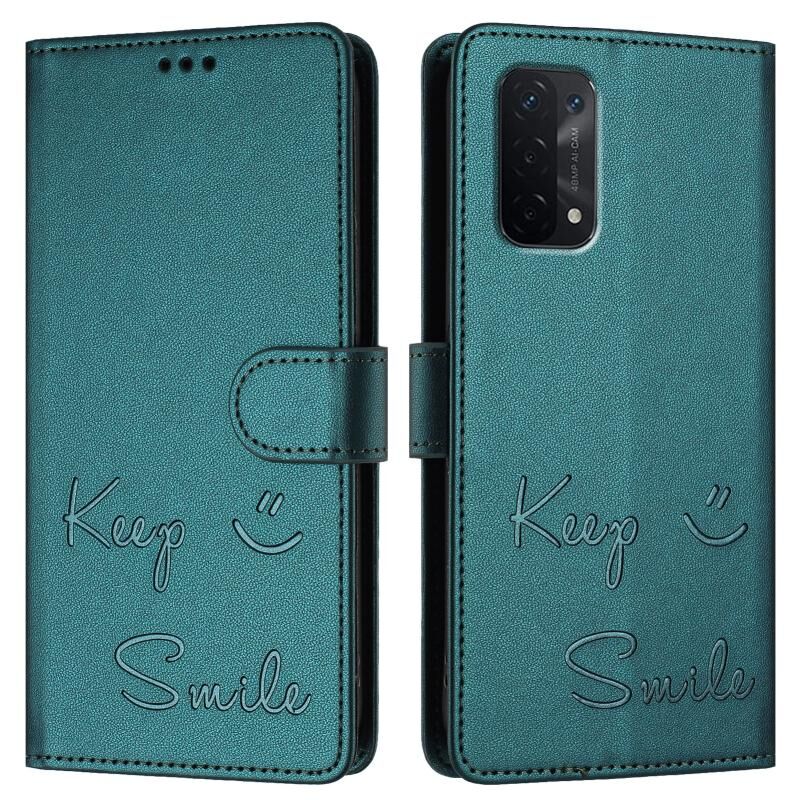 Για Realme V23 / Narzo 50 Χαμόγελο ανάγλυφο RFID δερμάτινη θήκη τηλεφώνου (Πράσινο παγώνι)