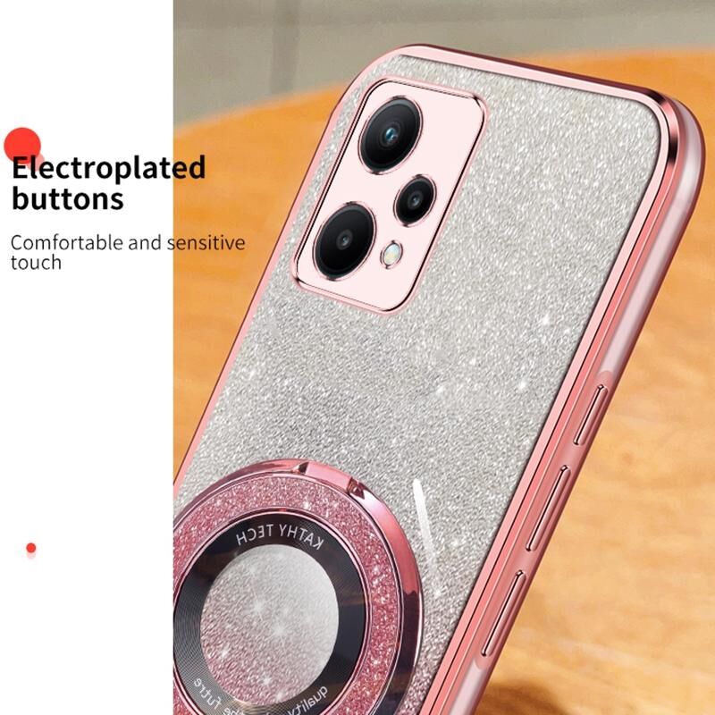 For Realme V25 / 9 Pro Plated Gradient Glitter Round Holder TPU Phone Case(Pink)