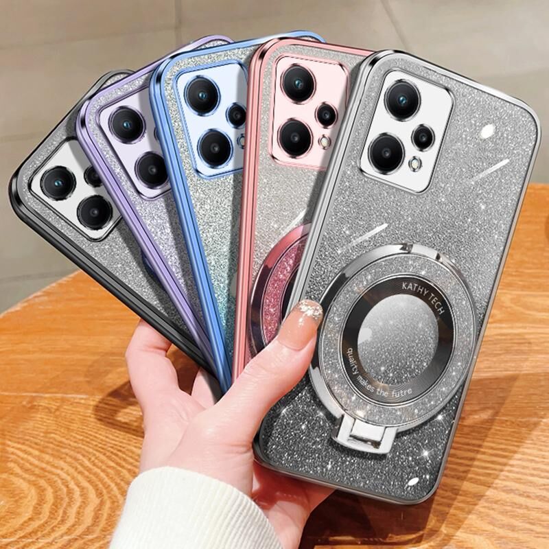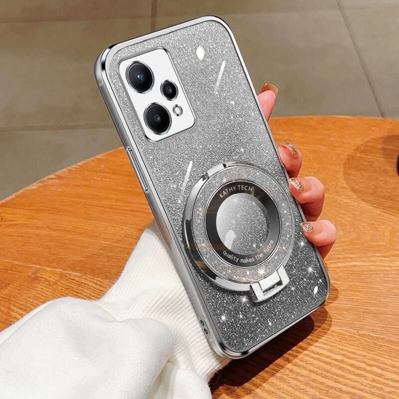 For Realme V25 / 9 Pro Plated Gradient Glitter Round Holder TPU Phone Case(Silver)