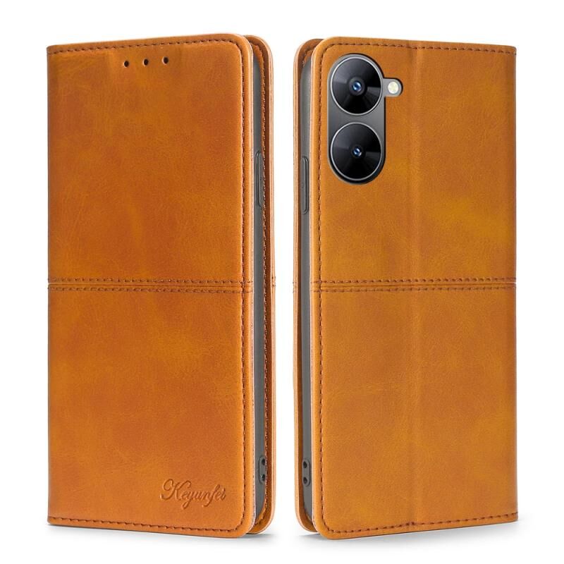 Για Realme V30 5G / V30t Cow Texture μαγνητική οριζόντια Flip δερμάτινη θήκη τηλεφώνου (ανοιχτό καφέ)