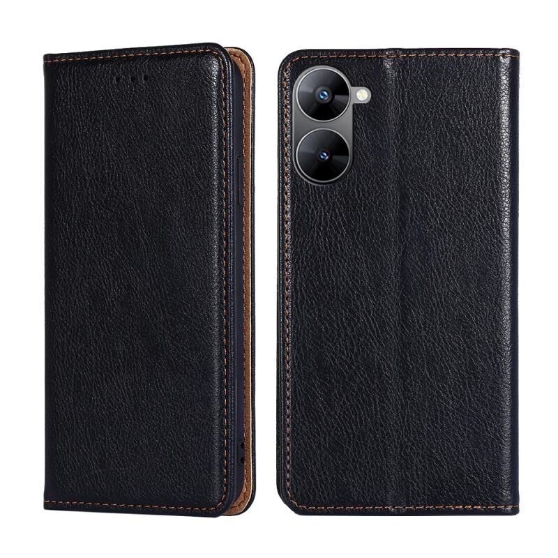 Για Realme V30 5G / V30T Gloss Oil Solid Color μαγνητική δερμάτινη θήκη τηλεφώνου (μαύρο)